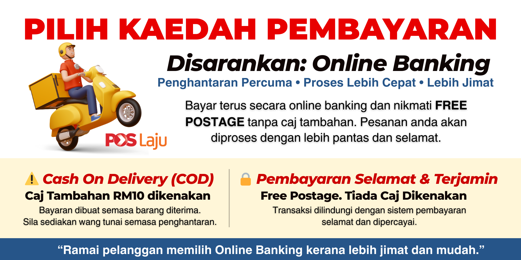 • ✅ Penghantaran COD oleh kurier POSLAJU